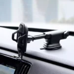 Adjustable arm with a suction base, suitable for securing to a car's interior surface.