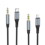 Connect devices that use a 3.5mm audio plug to your Lightning or Type-C devices.