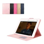 PU Leather Exterior, Cross Pattern Surface, Convenient Viewing Stand, Magnetic Closure Flap, Card Slots + Side Pocket.